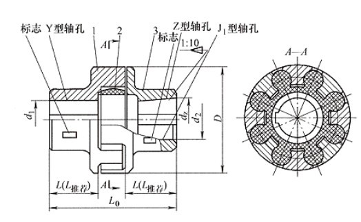 標(biāo)記示例:ML3型梅花形彈性聯(lián)軸器MT3 彈性件硬度≥75HZ