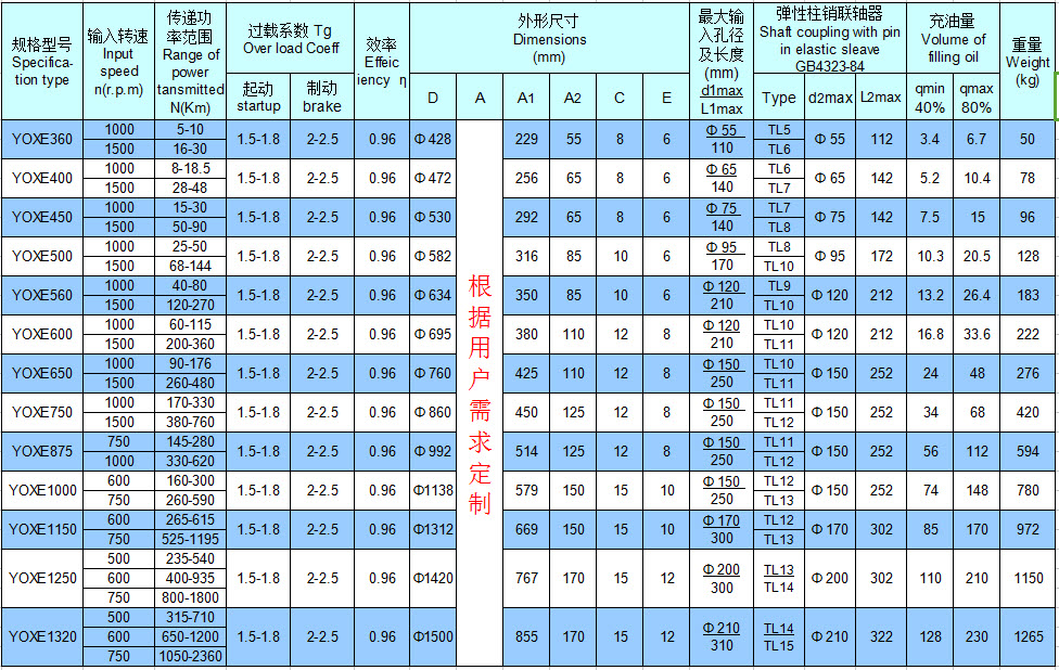 備注:YOXD水介質(zhì)參數(shù)同上。
